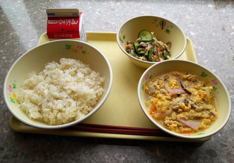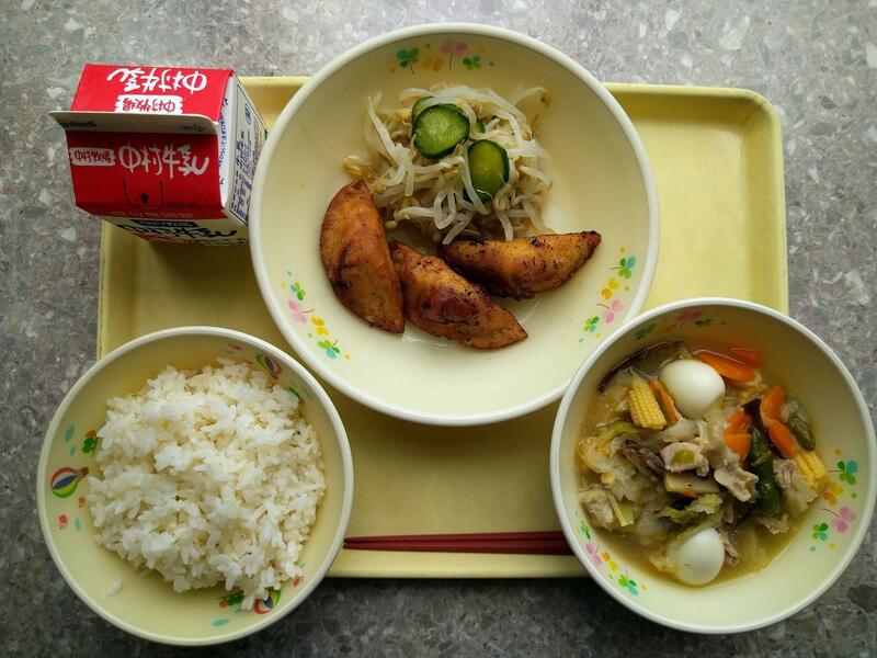 「高鍋町と言えばぎょうざ!と言われるほど、町内にはぎょうざのおいしい店があります。ここ数年は『毎月3日はぎょうざの日』ということで、おいしいぎょうざをアピールする取組が行われているようです。今日、6月3日はぎょうざの日です。今日は、町内のぎょうざの店から高鍋町の小、中学校の給食にぎょうざが提供していただきました。給食室で油でこんがり揚げましたよ。感謝しておいしくいただきましょう。」