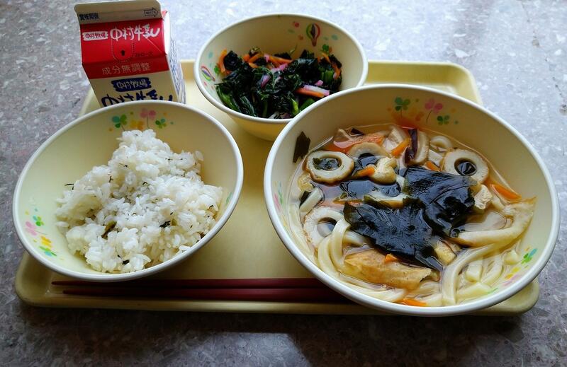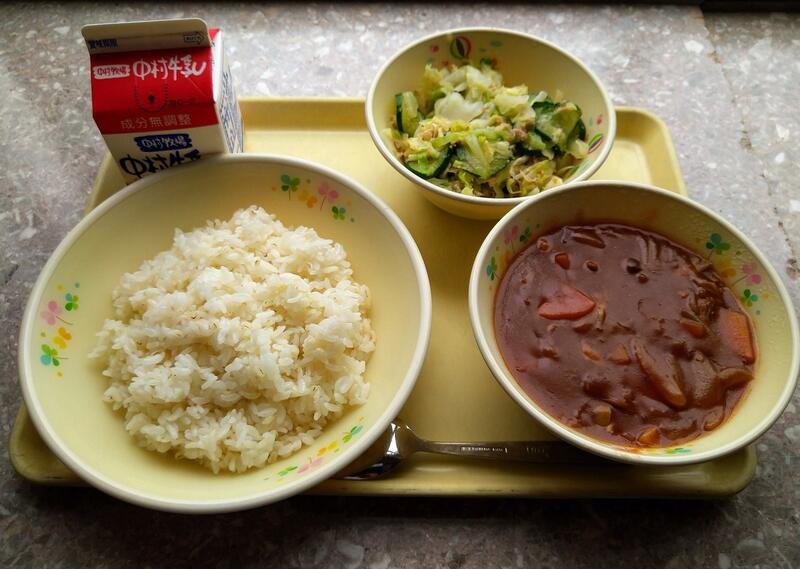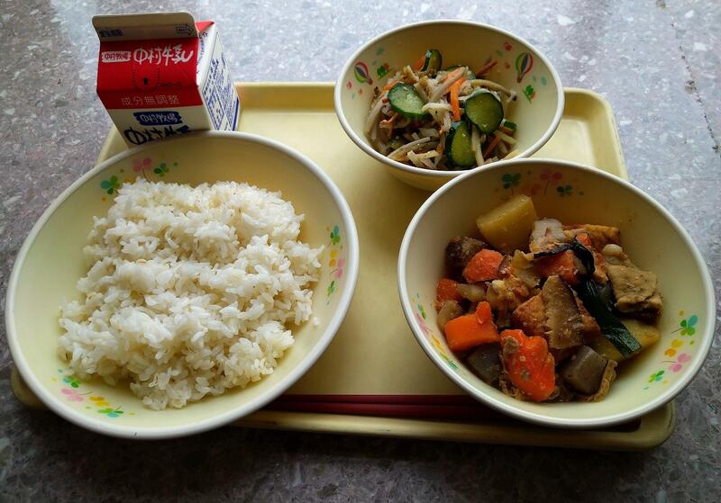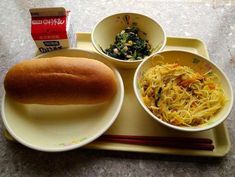 「今日16日は、『ひむかの日』献立です。この日の給食は、宮崎県内でとれた食べ物や宮崎県の郷土料理をみなさんに紹介します。今日は、宮崎県産の豚肉、キャベツやニラを使って、カレービーフンを作りました。にらは、紀元前から作られていたといわれ、長い歴史を持つ野菜です。日本で一番古い歴史の本といわれる『古事記』に、『加美良』という名で書かれているほど、古くから作られてきました。いろいろなビタミン、無機質がたくさん入っていて、疲れをとるのを助けてくれるので、『スタミナ食材』といわれます。新しい葉が出てくる3月から4月ごろがおいしい季節『旬』とされていますが、根元から刈り取ると次々に葉が生えてきて、1年に何度か収穫することができます。暑さにも寒さにも強い野菜です。」
