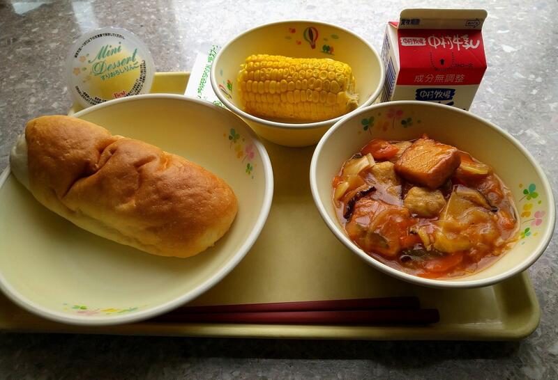 「今日は宮崎県産のトウモロコシを塩ゆでにしました。トウモロコシという名は、昔の中国『唐』から来た『もろこし』というのがその由来です。もともとはメキシコやアメリカを中心に作られていました。日本には16世紀ごろポルトガル人によって長崎に伝えられたと言われています。食用のトウモロコシはみずみずしく、甘みが強い種類です。野菜の中では糖質が多く、エネルギー源になります。主食代わりにもなり、米、麦にならぶ世界三大穀物です。宮崎県では、ゴールドラッシュ、めぐみ、メルフィーユ、プレミアム等いろいろな品種のトウモロコシが作られ、5月から6月中ごろまでたくさん収穫されます。トウモロコシは、朝、太陽が出る前に収穫するといいので、生産者の方は朝3時ごろから収穫するそうですよ。」