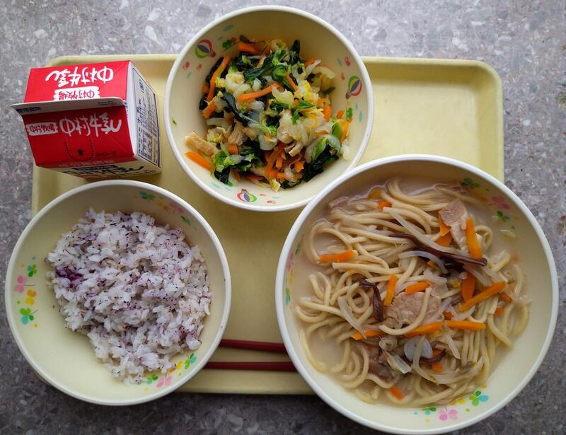 「ラーメンが日本にやってきたのは、江戸時代の鎖国から開国された明治時代のころです。神戸や横浜の港の周りにできた中国人街に中華料理の店ができたのがきっかけです。大正時代ごろから日本各地に広まりました。それから日本の好みにあう味、スープが作られ、今では大人気の料理です。塩ラーメン、味噌ラーメン、醤油ラーメン…今日はとんこつラーメンです。」