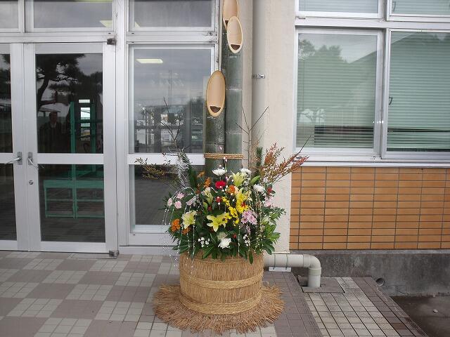 今年も、PTA役員の方々と地元の花屋さんのご協力により、正面玄関に立派な門松が設置されました。