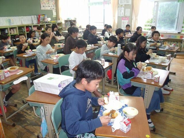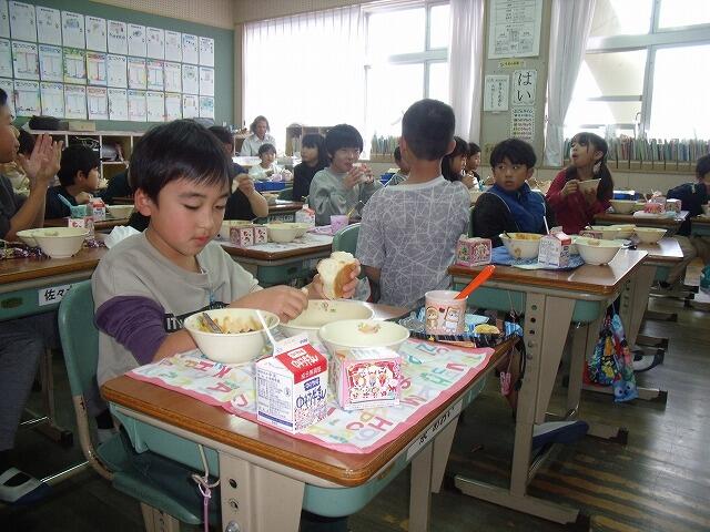 また、この日の給食のメニューは、ミルクパン、ビーフシチュー、フレンチサラダ、そしてクリスマスデザート。甘くておいしいチョコレートケーキに、大満足の子どもたちでした。