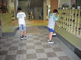 寒い中、掃除を頑張っています。ぞうきんがけも上手になりました。