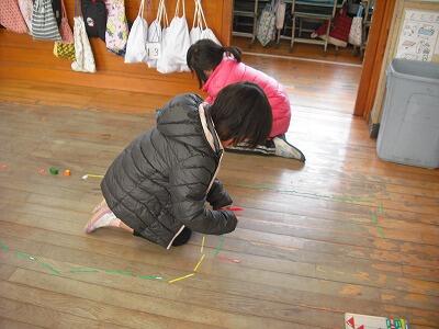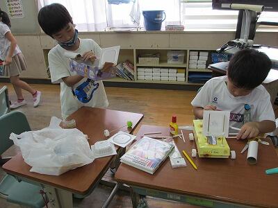 生活科でおもちゃ作りをしています。この日は、1年生を招待する前にクラスで遊んでみました。みんなで楽しく仲良く活動できました。