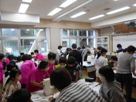 毎年、新富町地域婦人連絡協議会の方々にお手伝いいただき、6年生の家庭科の学習でミシンの使い方の学習やミシンを使ってナップサック作りに取り組んでいます。本年度も10名以上の方々に学校に来ていただき、大変助かっています。暑い中、ありがとうございます!