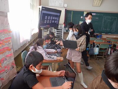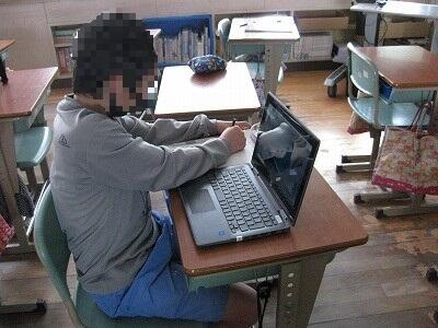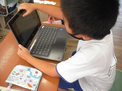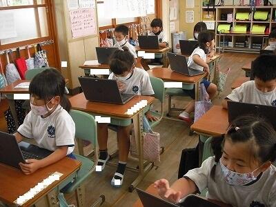 給食後、下校し、クラスの約半数の児童がリモート会議を用いて授業を受けました。