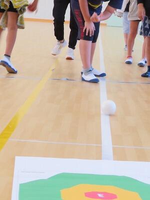 この日、初めてやってみました。コーンを旋回すること、なわとびでみんなの周りを回ることが難しいようでしたが、楽しんで取り組みました。
