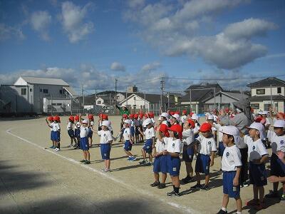 交流会では、1年生が運動会で自分たちが踊ったダンスや、「やきいもじゃんけん」を幼稚園・保育園の友達に優しく教える姿が見られました。元気のよい声が運動場に響き、みんな楽しそうに活動していました。