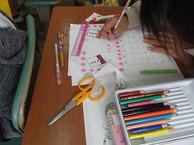 1年生の図工では、初めてはさみを使いました。色紙を数回折って、いろいろなところから切ってみました。色紙を広げて、「先生、見てください!」と嬉しそうに見せる子どもたちの笑顔が可愛かったです。はさみも、上手に使うことができました。