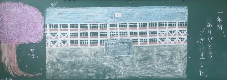 3月24日に見送った卒業生が、帰りに算数少人数指導教室の黒板に「ありがとうメッセージ」を残してくれました。メッセージと絵に心がホッとし、巣立っていった卒業生を思い出しながら目頭が熱くなりました。 本日で令和3年度が終わります。本校職員、保護者の皆様、地域の皆様に支えられてこの1年間を乗り切ることができました。お礼を申し上げます。(校長)