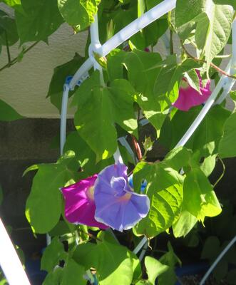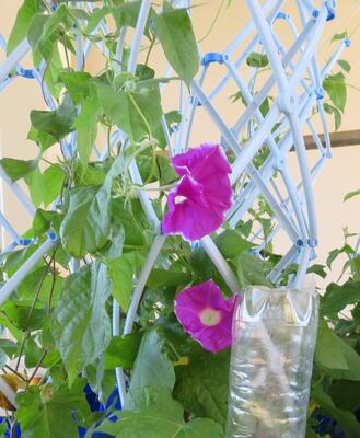 5月に種まきをしてから、毎日、一生懸命お世話してきたアサガオが、ついに花を咲かせました。ピンクや紫、青など、きれいな花が咲いています。これからも、みんなでお世話を頑張ります!