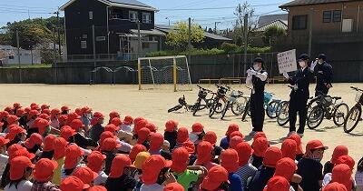 4月14日(火)3校時に3,4年生の交通安全教室が行われました。高鍋警察署の交通課の方、交通安全協会の方に来ていただき、自転車の点検や乗り方について教えていただきました。今回学んだことをこれからの生活に生かし、無事故で過ごしてほしいと思います。ご指導いただいた皆様、ありがとうございました。