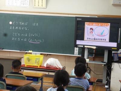 一年生の学級指導の時間に、歯磨きの学習をしました。