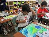小学校に入学して初めて絵の具を使って、シャボン玉に色をつけました。この日は、朝からワクワクが止まらなかったのですが、説明をしっかり聞いて真剣な表情で取り組むことができました。さすが、1年生!!
