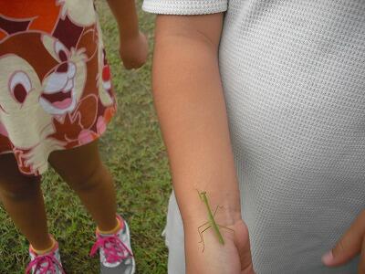 見つけた生きものは、赤とんぼやバッタやカマキリなどです。つかまえた生きものを観察してからにがしました。