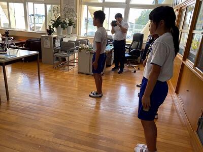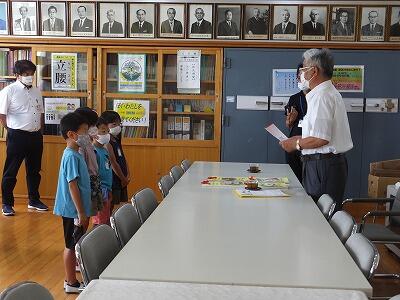 14日(月)に結団式がありました。リモートで校長室からの中継でした。