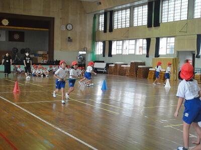 1年生が、来年度入学する幼稚園や保育園のお友達といっしょに運動会で踊ったダンスを踊りました。まず、幼稚園や保育園のお友達にダンスを教えました。お兄さん、お姉さんの1年生は、優しく教えてあげたので、幼稚園や保育園のお友達が覚えるのも早かったです。さすが、1年生です。最後に生活科で育てた「あさがおのたね」を幼稚園や保育園のお友達にあげました。4月からは、2年生になって入学してくるお友達を心待ちにしています。