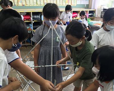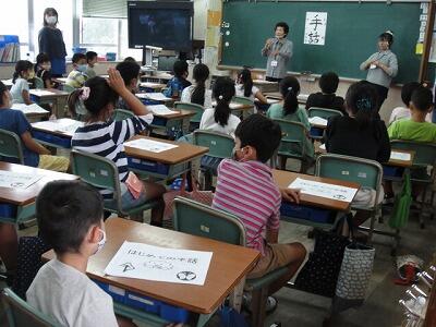2年生の生活科の学習で、町内の保育園生や1年生をお客さんとして招き、おもちゃ大会をしました。2年生のみんなは、年下の子たちに遊び方を分かりやすく教えることができ、立派なお兄さんとお姉さんでした。