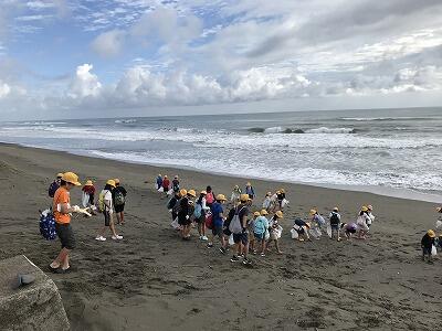 土曜授業では、富田浜の清掃活動とアカウミガメの孵化場の見学をしました。