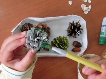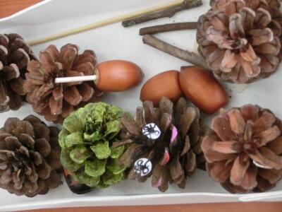 秋の遠足で まつぼっくりやどんぐりをたくさんひろいました。