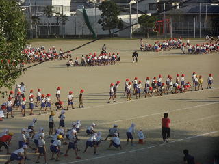 持久走の練習が終わって、ほっと一息・・・。がんばりました。
