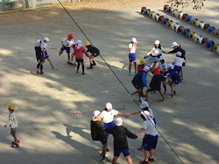 連休明けの火曜日は、お日様がかくれていて、とても寒い1日でした。さすがの1年生も震えながら縄跳びをしました。がんばっています。