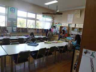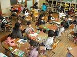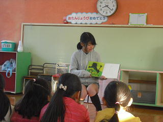 読み聞かせに行きました。園児たちは目を輝かせ聞いていました。6年生も1学期から続けていることもあり、上手になっています。