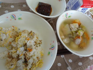 七草ちらし、お雑煮、魚のオカカあえ、牛乳・・・。この時期ならではのメニューでした。みんなで美味しくいただきました。