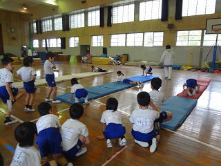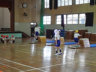 くるくる回ったり、跳び箱を跳んだり・・・、挑戦が続きました。生き生きとした活動でした。