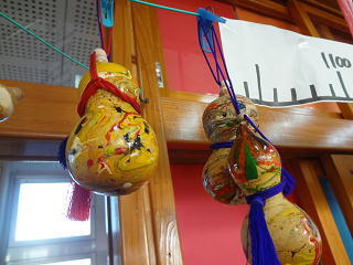 収穫した千なりひょうたん・・・、絵付をすると、こんなに楽しいひょうたんに・・・。