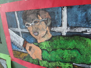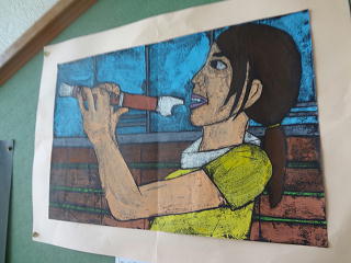 6年生の版画が掲げてありますよ。力作ばかりです。立ち止って鑑賞している人がたくさん見受けられました。