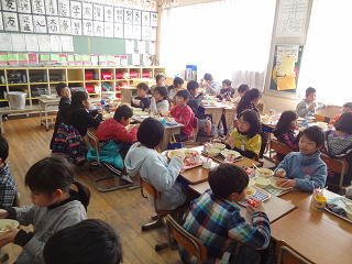 こんな寒い日に出来たての温かい給食にみんなにっこり・・・。おいしくいただきました。