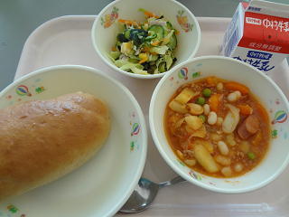 1年生の給食当番が始まって4ヶ月が過ぎました。人数分をつぎ分けるのは難しいのですが、ずいぶん慣れてきました。