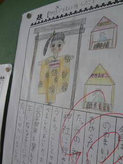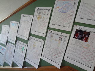 冬休みの一コマが挿絵を交えて表現してあります。楽しかった冬休みが伝わる作品ばかりです。参観日にじっくりご覧ください。