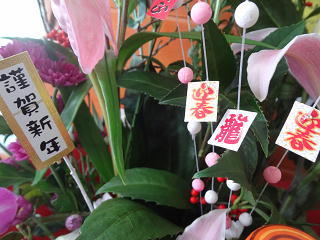 こんな文字が・・・。先日PTAの役員の方を中心とした門松作り・・・・。玄関受付のお花の中にも、春を迎え入れる準備もされていました。すてきな計らい・・・ありがとうございました。