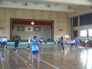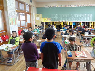 久しぶりの友達に嬉しそうに駆け寄り、活動をしていました。5年生はその姿を目標にしているようです。