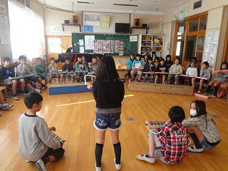 みんなの前で一人で演奏!チャレンジする姿にクラスメイトからは温かい拍手が送られていましたよ。
