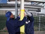 安心して活動できるように・・・・。そんな願いを込めて、支柱をクッションのような柔らかい素材で覆っていただきました。ありがとうございました。これで安心してサッカー等ができますね。