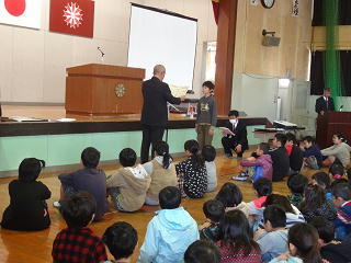 5年生の代表3人が本年度の決意を述べたり、表彰もありました。子供たちの活躍が楽しみな一年になりそうです。