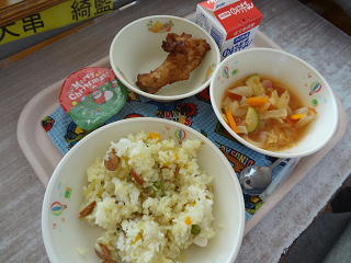 給食はクリスマスメニュー・・・。子供たちは大喜びでした。