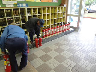 さまざまな点検も行われています。今日は消火器の交換・点検が行われました。