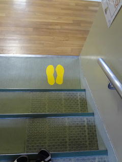 昨日の職員作業でのペンキ塗装班・・・、足マークを描きました。児童が日々の学校生活の中で、立ち止っての安全確認が必要な個所に設置しました。子供が校内で安全に安心して過ごせるように・・・・と願いながら・・・。