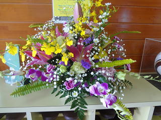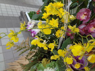 玄関には、こんなに華やかなお花が・・・・。まるで富田小の3学期のスタートに華を添えるかのように・・・。