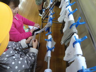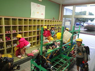 お友達を見つけると笑顔で「おはよう!」・・・、傘置き場にきちんと傘を置く姿は、成長をうかがわせました。
