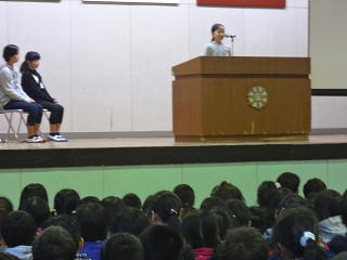 校長先生から「計画の大切さ」等、お話がありました。そして児童2名の2学期をふり返っての作文発表がありました。みんな真剣にお話に耳を傾けたり、聞き入ったりしていました。