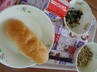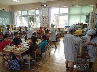 3学期、初めての給食!1年生は給食の準備がスムーズに行えるようになっていました。