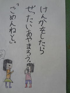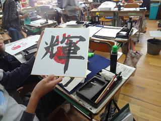 漢字一文字で表現しました。自分の今の手形を添えて・・・、二十歳になったら、この作品をふり返るそうです。20歳の自分にあててのメッセージ・・・素敵な活動ですね!