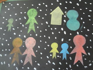 黒の画用紙にクレヨンで描くと・・・こんなに素敵な作品が出来上がりましたよ。
