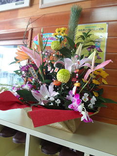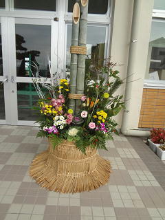 先日、PTAの役員の方々を中心とした門松づくり・・・。学校の顔である玄関受付にもフラワーアレンジメントを飾っていただきました。華やかです!温かい心くばり・・・ありがとうございました。