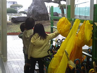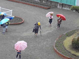 冷たい雨でしたが、みんなお気に入りの傘で元気に登校!
